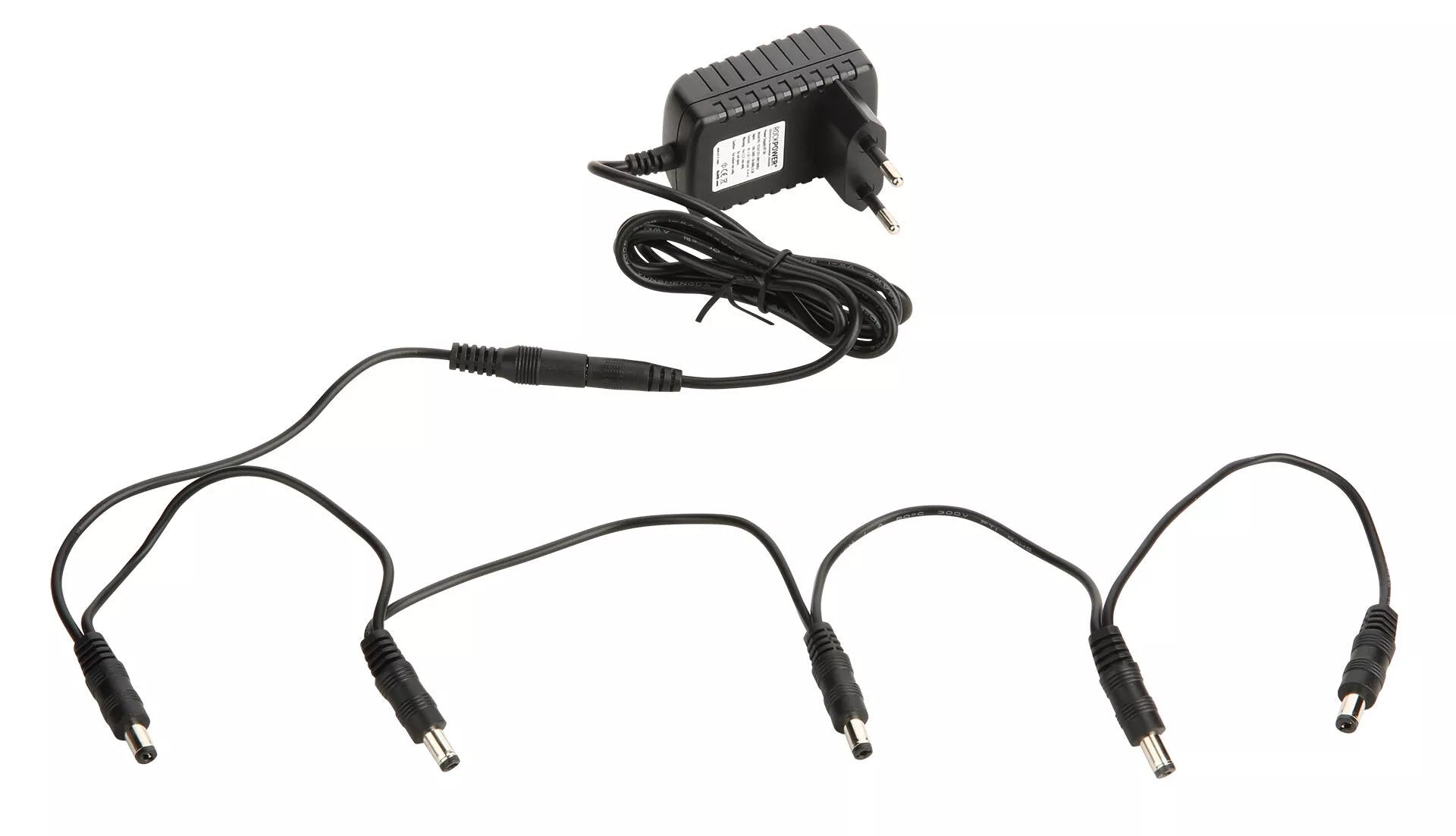 Krachtige voeding voor 9 volt gitaareffectpedalen. Inclusief daisy chain met 5 outputs. Genoeg om je pedalboard mee van stroom te voorzien.